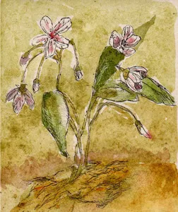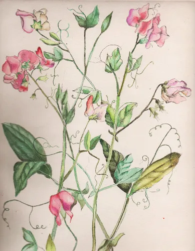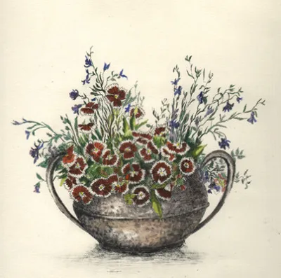 A collection of hand-coloured etchings in the spirit of coded Victorian flower arrangements.